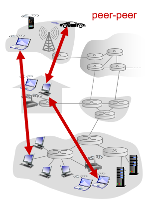 - p2p : 어떤 end system이 클라이언트 서버 역할을 모두하고 메세지를 서로 initiate, 응답 모두 가능