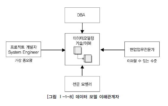 - 데이터 모델링은 통합관점의 뷰를 가진 개념 스키마를 만들어가는 과정