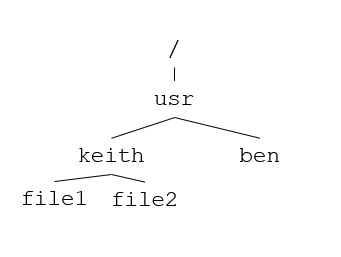 루트 밑에 usr 디렉토리 폴더가 있고 그 아래 keith, ben 디렉토리가 있음