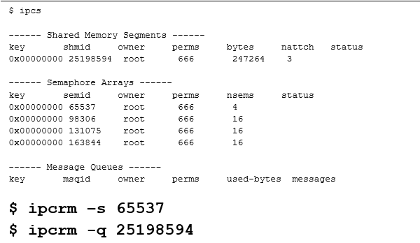 | $ ipcs –s –a /* all the available information about the semaphores */ |