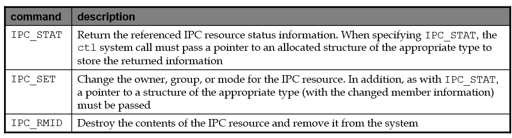 명령의 종류에는 밑에 표 세개가 있음 이건 기본 명령임 각 msgq sem shm에 대해서 추가적인 명령이 또 있음