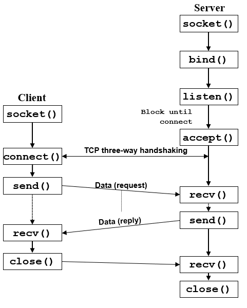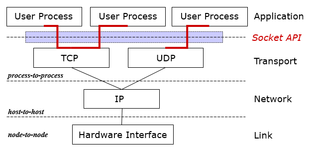프로세스 간에 tcp ip 프로토콜을 사용해서 나와있는 단자 끝에 소켓 인터페이스라는 표준 인터페이스를 제공