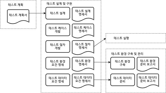 - 조직 테스트 명세 개발 : 조직의 테스트 목표를 바탕으로 조직 테스트 정책 명세서 및 조직 테스트 전략 명세서 개발