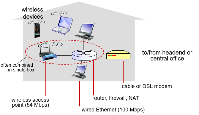 cable or DSL 모델 -> 라우터 firewall NAT -> wireless access point -> wireless device of 케이블에 직접 연결